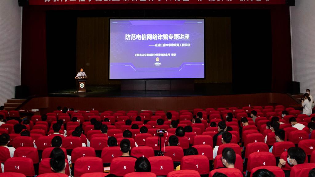 为增强2022级新生网络安全意识,提升自我保护的意识和能力,创建和谐平安校园。9月18日下午,物联网工程学院在文浩馆观众厅举办新生防诈骗安全教育专题讲座。无锡市公安局滨湖分局雪浪派出所杨恺警官受邀担任主讲嘉宾,全体研究生和本科新生参加活动。