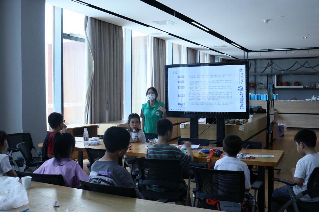 团队成员李琨莹、齐子时、薛羽辰、张思源分别为苏州市高新区文体中心青少年活动中心暑托班的孩子们,上了生动活泼的节水课。团队成员通过播放《被污染的水下世界》视频、展示被污染的海水生物等方式,激发孩子们的探索欲,使他们认识到水资源保护的重要性。接着,通过讲解中国水资源现状、水污染的危害、污水怎么处理等内容,帮助孩子们积累了丰富的知识,逐渐形成绿色环保的责任意识,使孩子们受益匪浅。