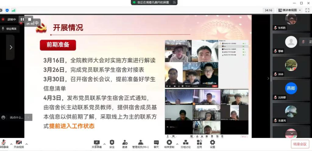 2022年4月6日下午,物联网工程学院党员教职工联系学生宿舍工作推进会在腾讯会议平台举行,学院党委书记程捷音、副书记孔丽丹主讲,全体党员教师参加会议。
