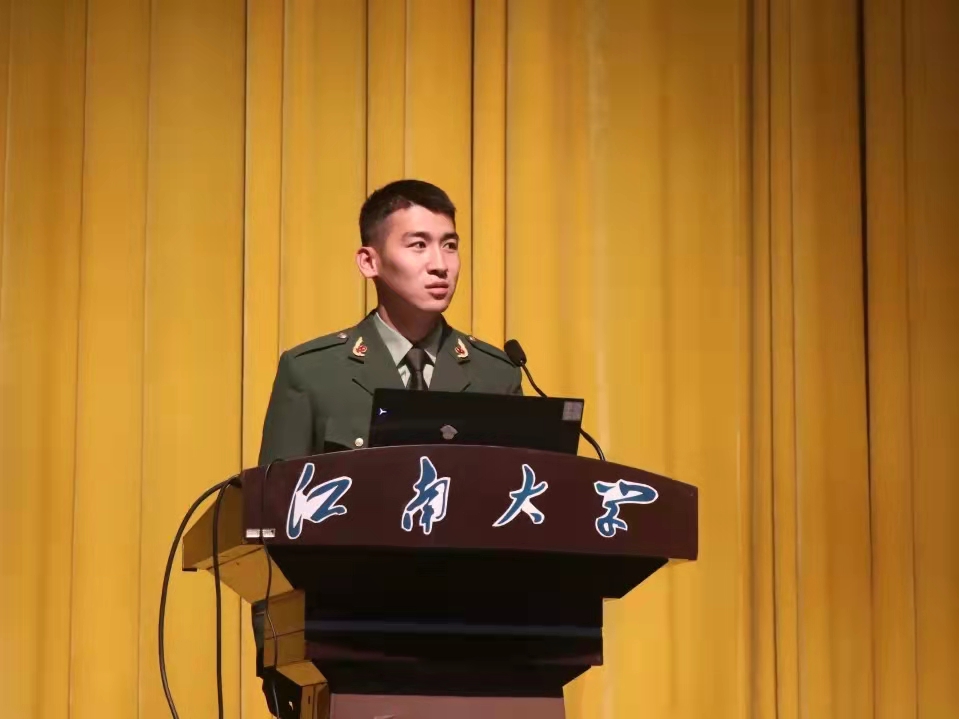 随后,退伍学生代表唐流星发言。他回顾了自己激昂的军旅岁月,他说:军队是一所大学校,我不仅学习到了政治、军事和文化知识,也学会许多做人的道理,学到许多社会上和家庭中学不到的东西。军旅生活虽是艰难的,可咬咬牙挺过去就能受益匪浅,正在这个过程中我学会了勇敢、自律与坚持。他鼓励即将参训的新生们,义无反顾地迎接军训的考验,突破自己,勇往直前。