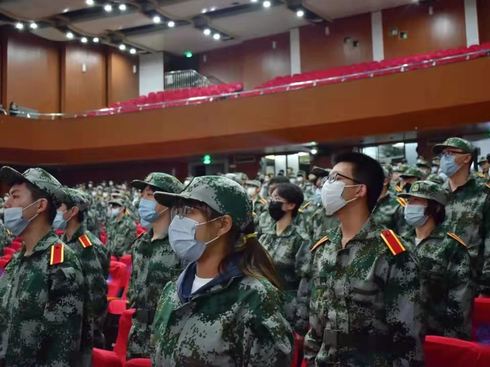 军训动员大学全体起立奏唱国歌