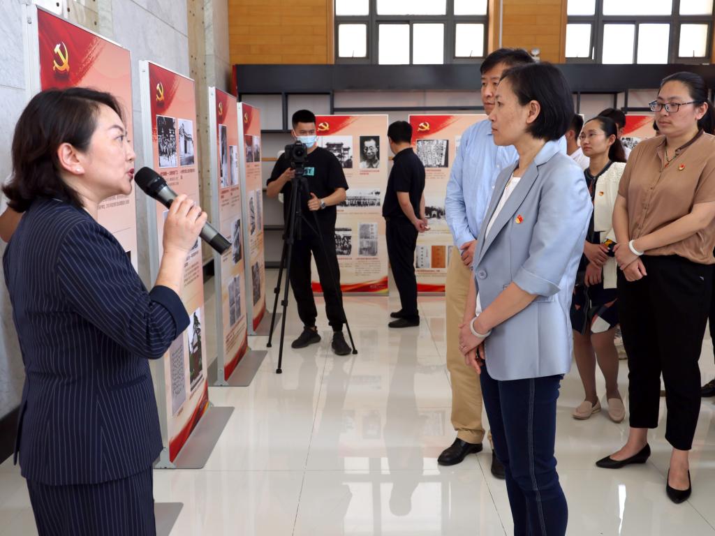 图书馆一楼展厅展出。开幕式上,特邀常州三杰纪念馆馆长黄明彦为本次展览揭幕,师生在黄馆长的引导下,聆听、感受革命先辈的奋斗故事和赤诚初心。