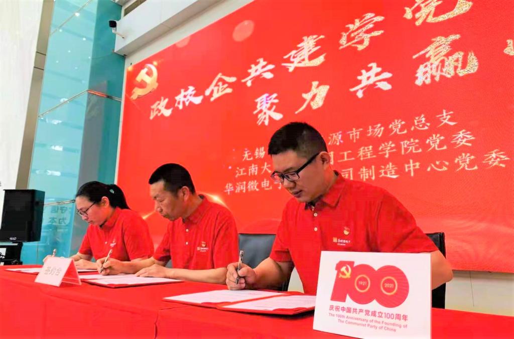 5月4日,正值五四青年节,物联网工程学院党委与华润微电子有限公司制造中心党委、无锡市人力资源市场党总支共同举办“政校企共建学党史 聚力共赢芯未来”献礼建党100周年学习教育活动。无锡市人力资源和社会保障局人才开发和对外合作处处长戴威、人力资源市场党总支副书记白江、副主任王振华,黄漫