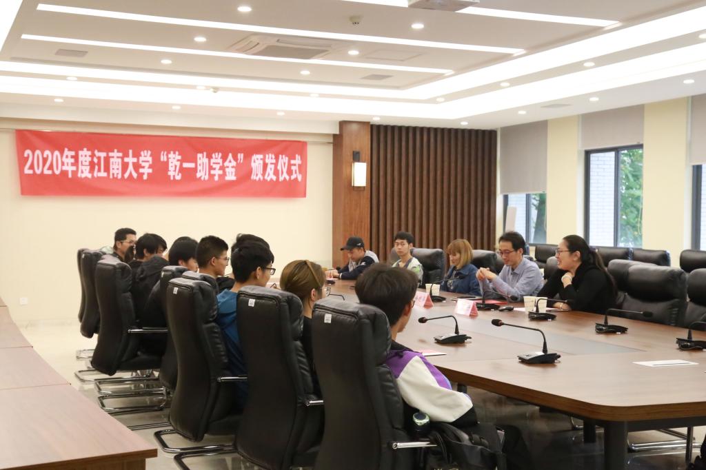 物联网工程学院B222会议室举行。上海乾一化学品有限公司运营总监徐晓华,物联网工程学院党委副书记、副院长孔丽丹以及全体受助学生出席了本次颁发仪式。仪式由辅导员李诗炜主持。