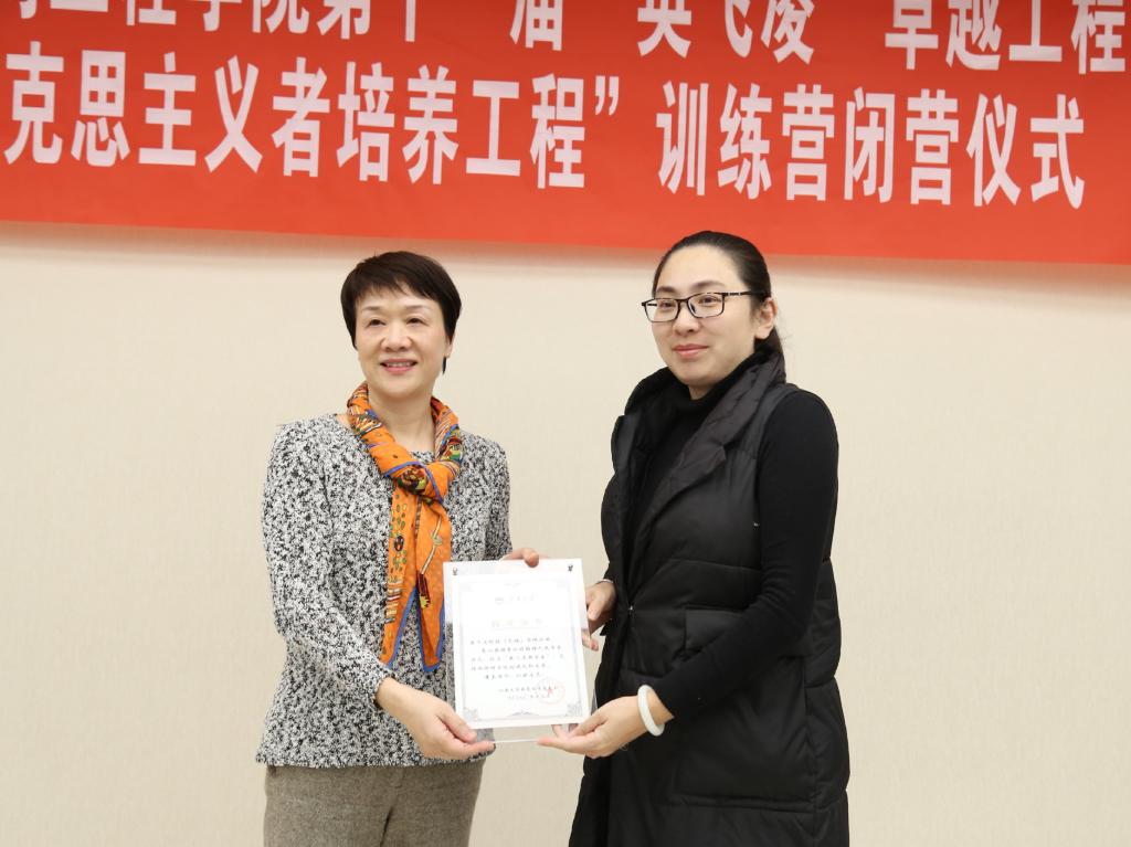学院党委副书记孔丽丹向英飞凌公司颁发捐赠证书