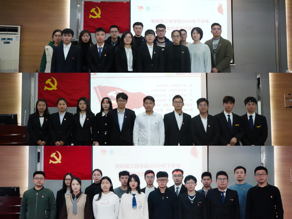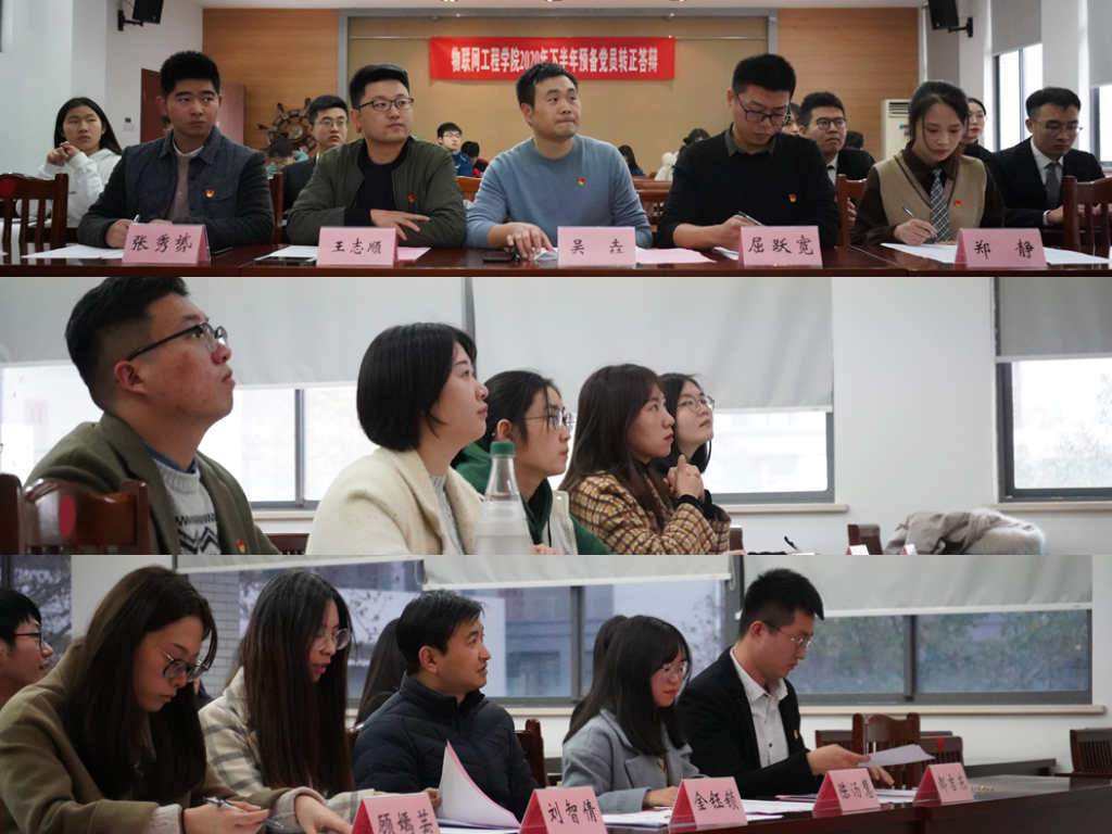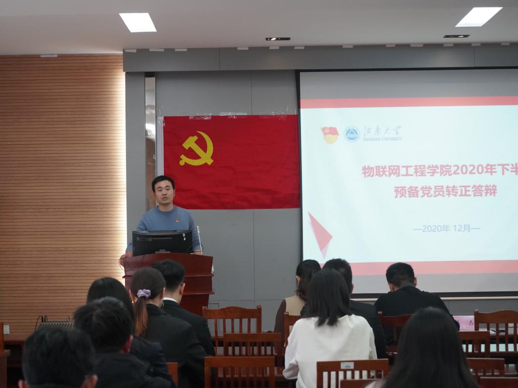 为深入学习贯彻党的十九届五中全会精神,结合预备党员转正答辩工作,落实党员发展“三投票三公示一答辩”实施办法,12月9日下午,物联网工程学院2020年下半年预备党员转正答辩暨学习党的十九届五中全会精神知识竞答在学院B310顺利举行。本次活动分为三组进行,物联网工程学院分团委书记吴垚,辅导员金钰锁、李灿、屈跃宽,辅导员、本科生党支部书记侯玉莹、王雪冰、王志顺,研究生党支部支委张秀赟、陈汤慧、刘智倩、谭永强、顾嫣芸担任答辩评委,赵作琴等28名预备党员参加了答辩和知识竞答,入党积极分子和各支部党员代表共同参加了本次活动。三场活动分别由学生党支部书记都吉东、吴晨、郑静主持。