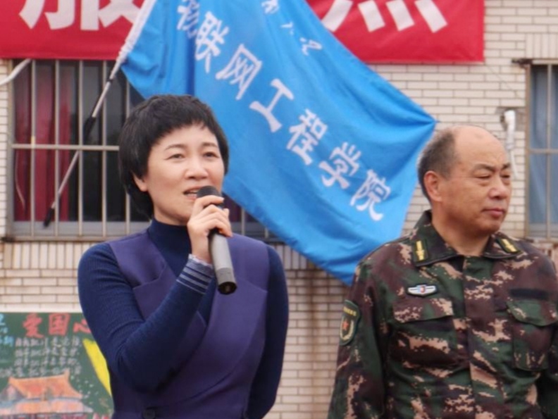 慰问过程中,学院党委书记程捷音向全体承训教官表达了衷心的感谢,向全体参训新生表示了亲切的慰问。她指出,2020届军训是与众不同的一届军训,但是军训的内容和实质没有改变,并向同学们提出了三点希望:一是希望同学们通过短暂的军训生活增强体质,增强组织纪律观念;二是希望大家在军训的各项活动中能够发扬团结协作精神,精诚合作,培养艰苦奋斗作风;三是希望军训能够磨练同学们的意志,通过经历忍受身体上所经历的疲惫和痛苦,能够蜕变成更强大的自己,能够将自己的未来与祖国的未来联系起来,拥有报国的胸怀。最后,程书记对物联学子在2020级军训歌咏比赛中荣获一等奖的优异成绩表示祝贺,同时对即将到来的军训汇演表示期待,期望大家能够以最饱满的热情投入到汇报演出中,完美展现军训成果,向全校师生展示别具一格的物联风采。