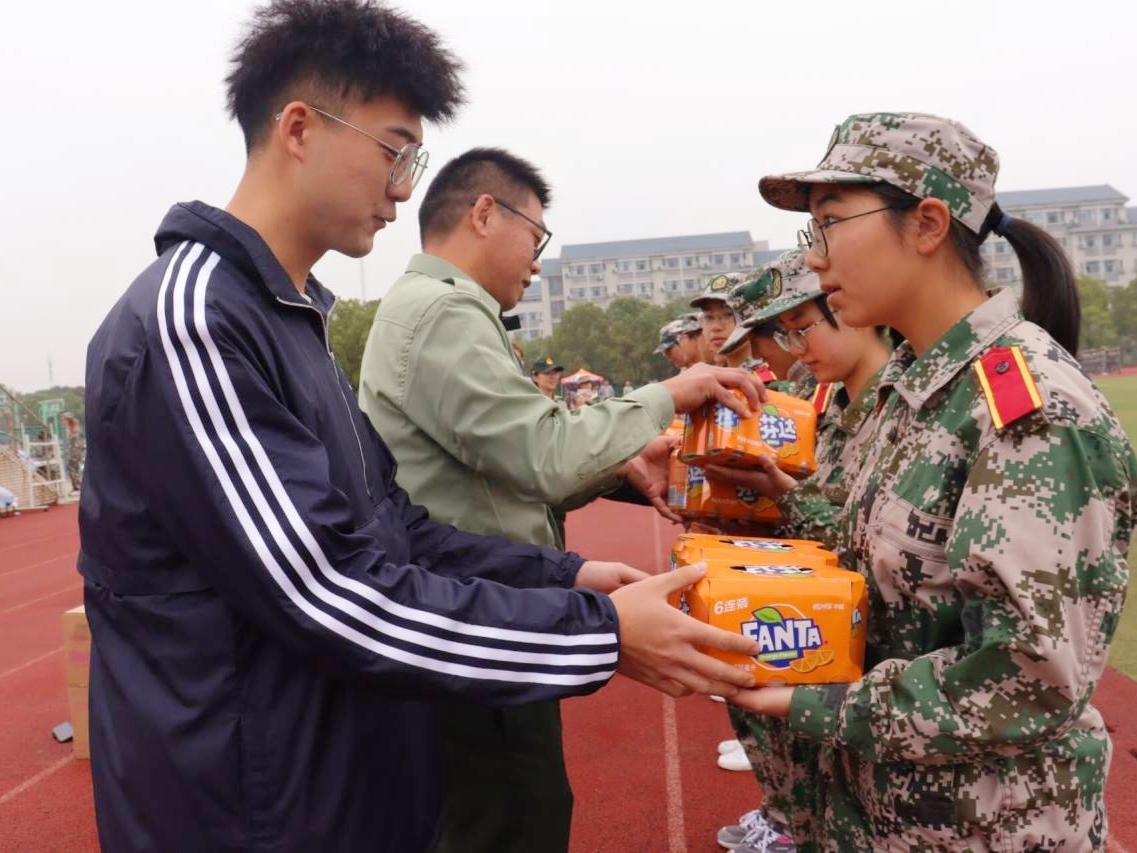 学院老师为教官和新生送上慰问品
