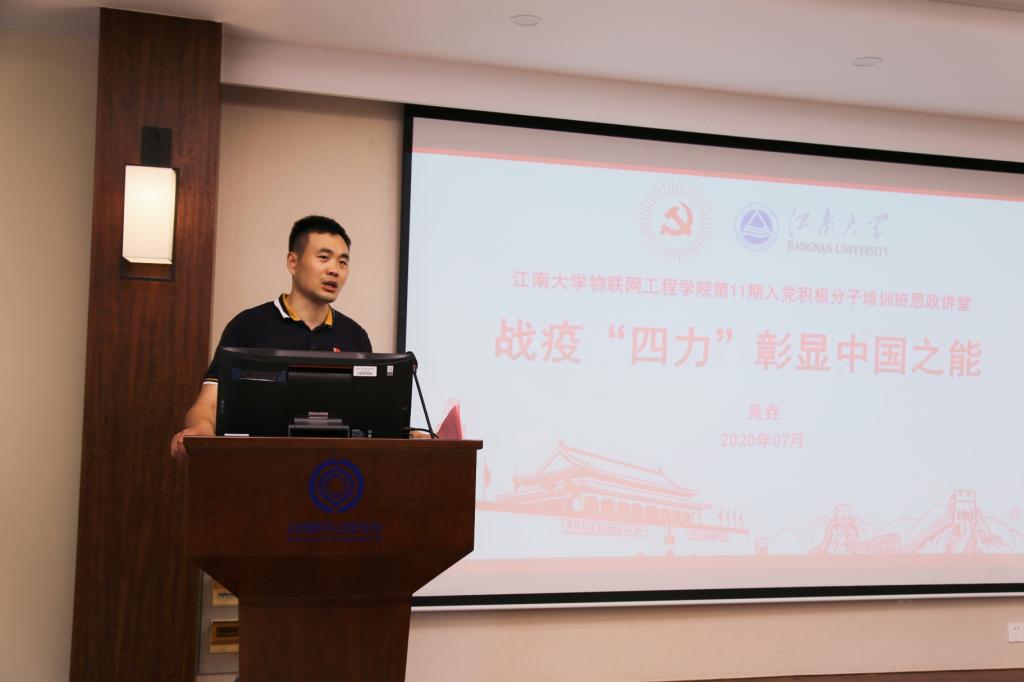 7月9日下午,物联网工程学院第11期入党积极分子培训班开班仪式在学院B222会议室成功举办。物联网工程学院党委书记程捷音、院党委秘书孙小芳、分团委书记吴垚出席仪式,学生党支部书记,第10期、第11期入党积极分子培训班部分代表参加了现场活动,其他入党积极分子培训班学员通过企业微信在线上参加了活动。辅导员王志顺主持本次开班仪式。