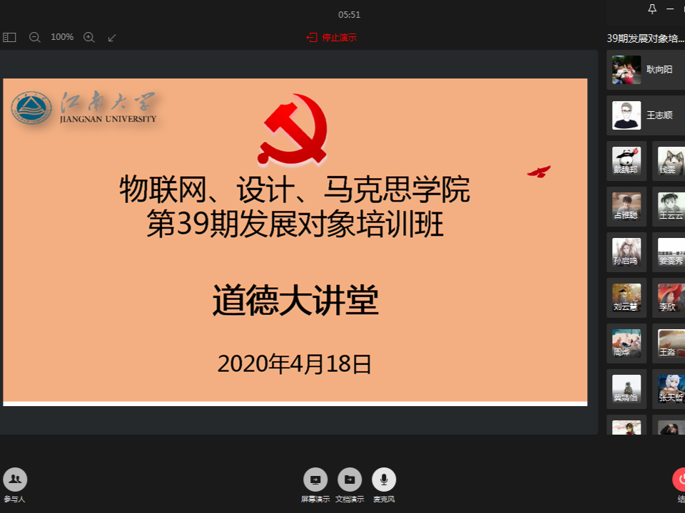 物联网工程学院党委副书记耿向阳四位老师主讲,直播课程由物联网工程学院辅导员王志顺主持,参加此次培训的学员来自物联网、设计、马克思3个学院,共计90名学生党员发展对象。