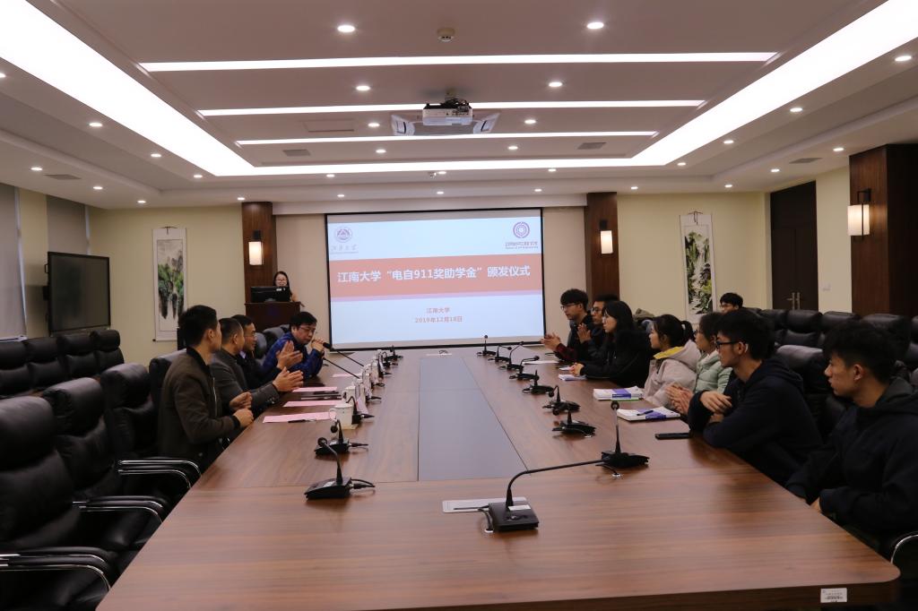 “电自911奖助学金”颁发仪式在物联网工程学院B222会议室顺利召开。原无锡轻工大学电自911班校友赵树才、郑成坚,物联网工程学院党委副书记、副院长耿向阳,分团委书记吴垚出席本次颁奖仪式,仪式由19级辅导员李诗炜主持。