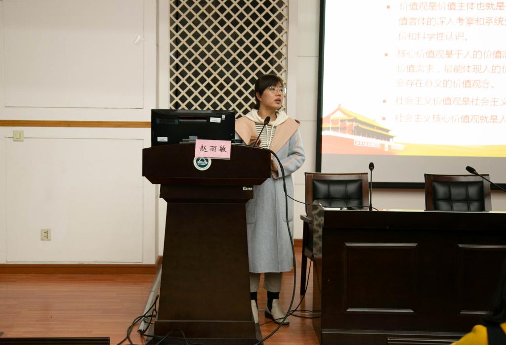 赵老师从我国社会主义核心价值观提出的时代背景讲起,核心价值观的提出是应对经济全球化挑战的时代选择,是我国经济发展方式实质性转变的客观要求,是中国特色社会主义新发展的内在规律,更是实现中华民族伟大复兴的中国梦的历史使命。接着,赵老师又从构建社会主义核心价值观的现实困境、培育关键节点和主要途径三方面做了探讨。24字的核心价值观分别从国家、社会、公民的角度向我们展示了社会主义核心价值观的基本内容和内在联系;无论何种学历,多大年龄,社会主义核心价值观的培育与践行都必不可缺,每个人都应该将其内化于心,外化于行。最后,赵老师还通过分享身边的优秀校友的奋斗故事启发同学们践行社会主义核心价值观的方式方法有很多种,它贯穿于每个人的生活、学习、工作之中。