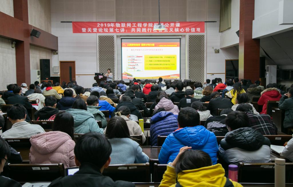 物联网工程学院梦想公开课暨关爱论坛第七讲在学院D328室开讲。本次公开课的主题是“共同践行社会主义核心价值观”,由学院分团委副书记赵丽敏主讲,物联网工程学院大一大二学生们参与了本次活动。