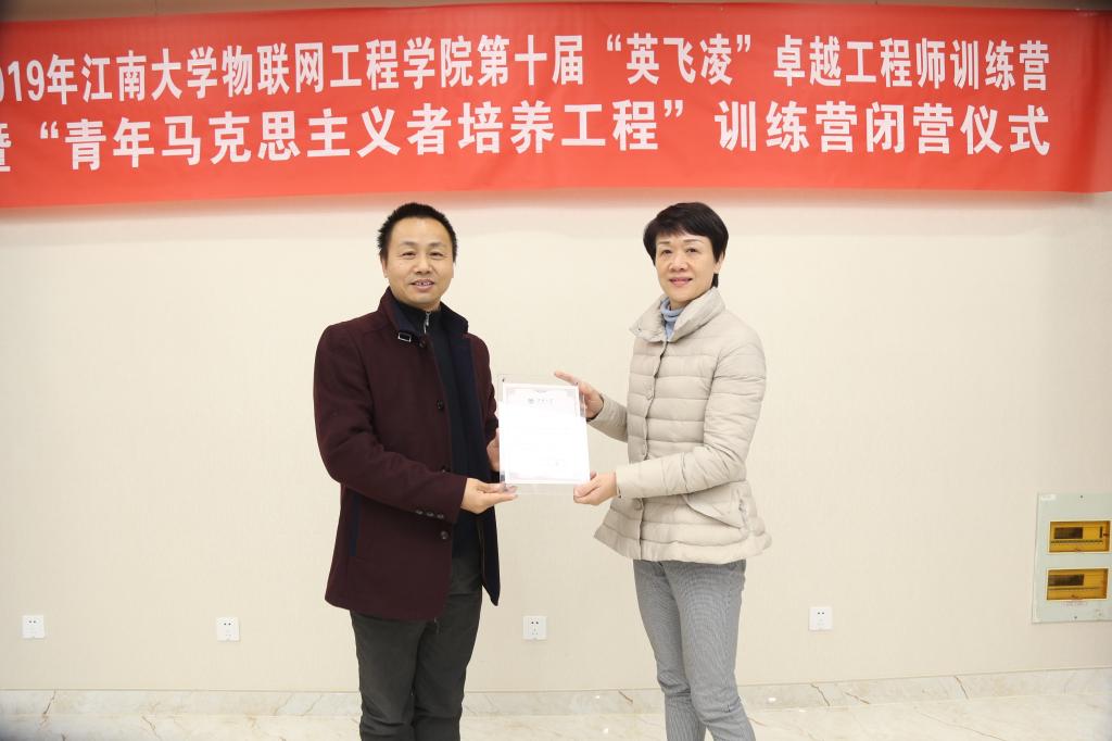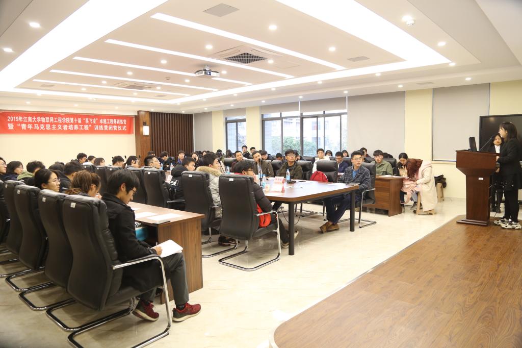 物联网工程学院第十届“青马工程”训练营暨“英飞凌”卓越工程师训练营在学院B222会议室举行。英飞凌科技(无锡)有限公司人力资源部总监王晓东女士,英飞凌科技(无锡)有限公司人力资源部专员朱玉兰女士,物联网工程学院党委副书记、副院长耿向阳,物联网工程学院分团委书记吴垚,以及本届训练营的全体营员、英飞凌奖学金获得者,共70余名同学共同参加了本次闭营仪式。