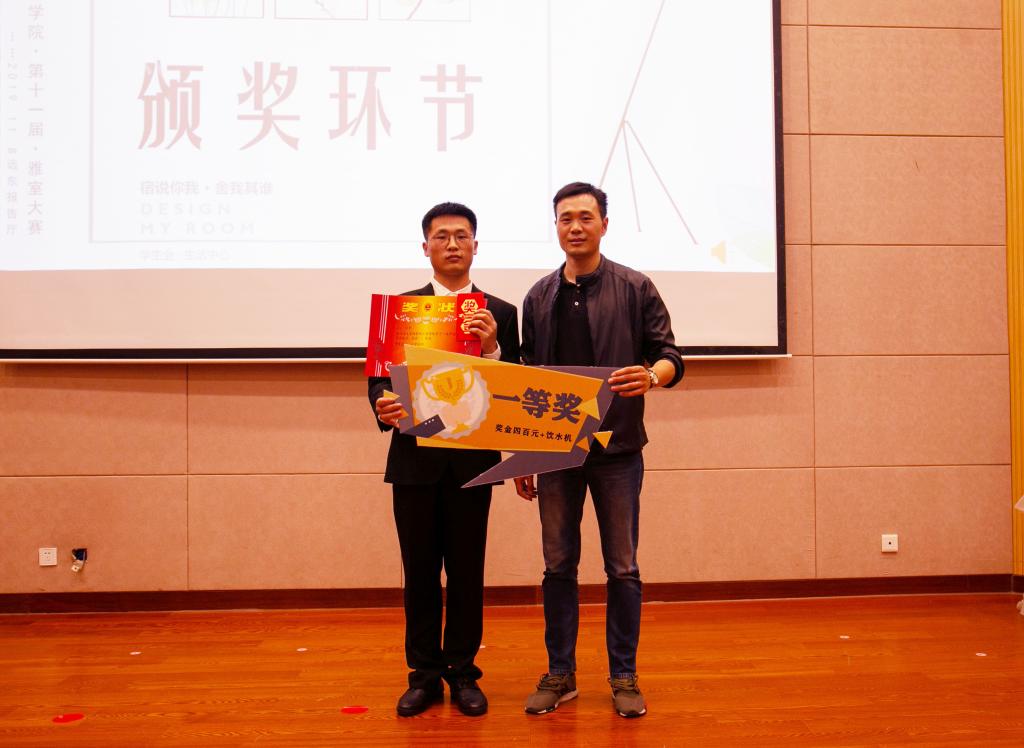 团委书记吴垚为一等奖宿舍颁奖