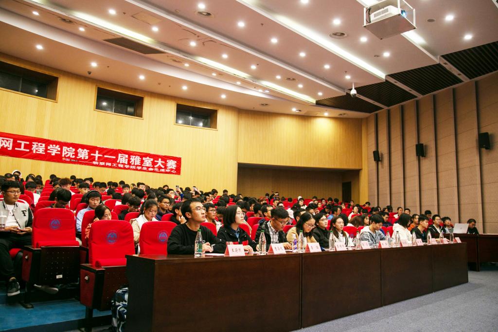 物联网工程学院第十一届雅室大赛在远东报告厅隆重举行。参加本次大赛的嘉宾有物联网工程学院团委书记吴垚,研究生辅导员杨兵,2019级辅导员李诗炜、李猛,生活中心指导老师侯玉莹,校团公寓副主席田鹏,策划部部长张淼飒,物联网工程学院学生会副主席曹喜悦、王蔚然、孙成龙、张恒。到场的还有入围宿舍所在的班级成员以及各班宿舍长。本次比赛的主持人是黄怡嘉同学和马晓龙同学。