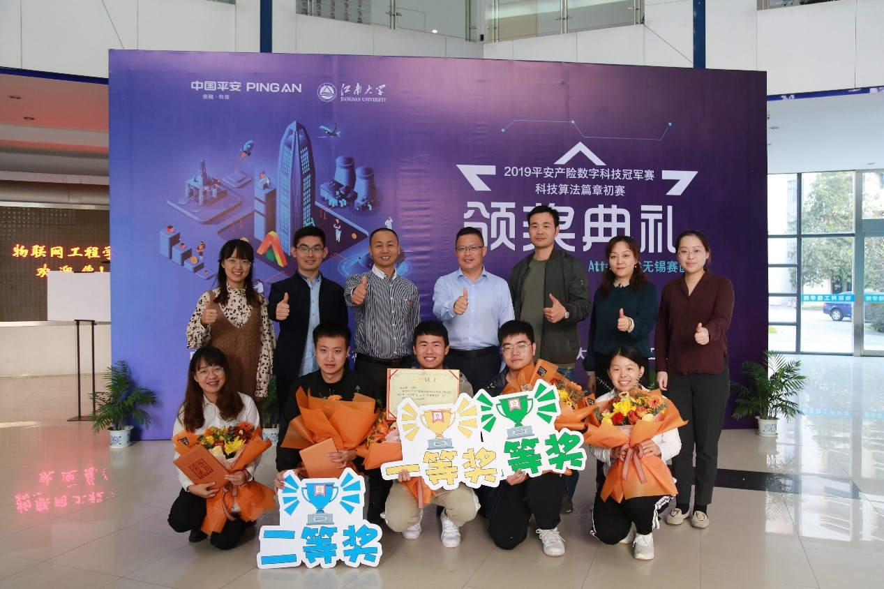 耿向阳书记致欢迎辞。他在致辞中对平安无锡分公司搭建赛事平台表示感谢,并介绍了物联网工程学院在学科竞赛方面的先进方法和有益经验。王有东介绍了平安的发展历程、社会责任及“金融+科技”的企业定位,并结合数字科技的赛事主题,就多项平安自主研发并成功应用于业务场景的先进技术与到场师生进行了交流,例如510急速查勘、图像及微表情识别等。活动现场气氛热烈,到场的三支获奖队伍均表示通过这次活动体会到了金融市场对数字科技发展日益迫切的需求,也刷新了对于平安、对于保险行业的固有印象。