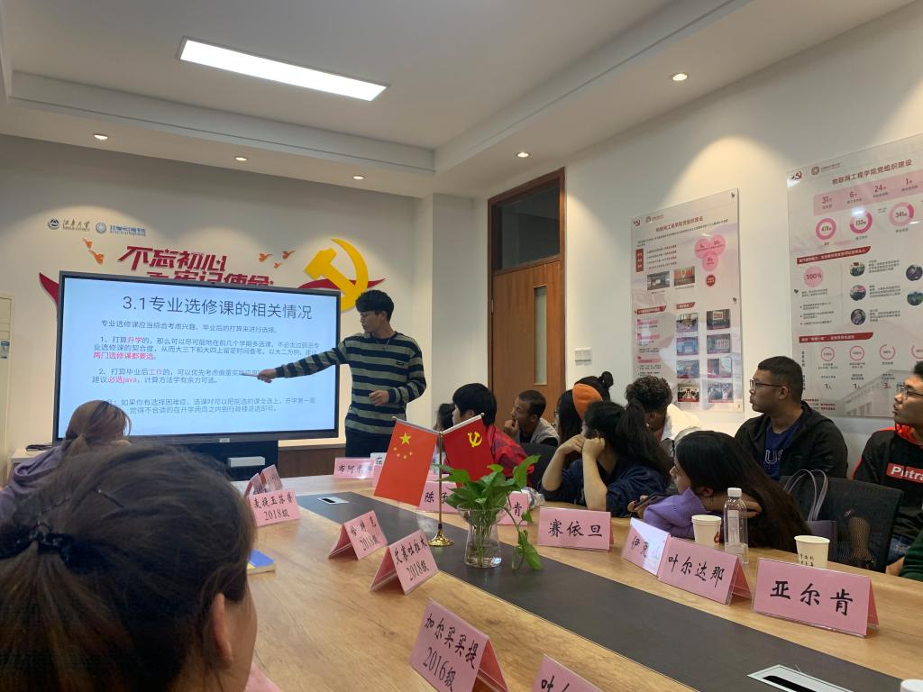 三年以来的深刻体会并祝学弟学妹们学业顺利,愉快地度过自己的大学生活!大学生退役返校学生艾赛吐拉木从他入学再到做入伍决定以及他艰苦又刻骨铭心的军旅生活,他感叹返校之后的江大翻天覆地的变化,并表示,很庆幸自己的青春有军装的样子!从预科班毕业再到物联网学院的2018级学生恰特克,通过幻灯片介绍关于计算机科学与工程专业满满的干货,将本次交流会的气氛带向高潮,现场同学都纷纷拿起手机拍下PPT上的内容,收益颇多。