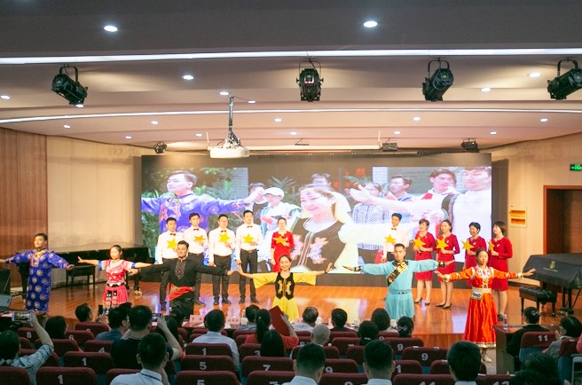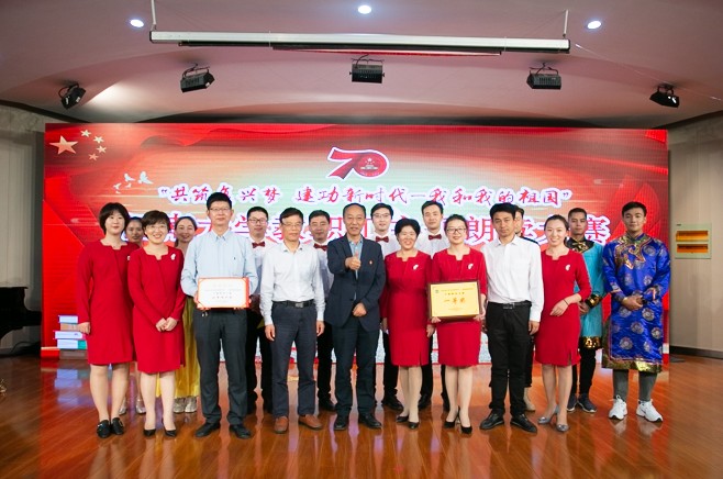 教师代表在北区活动中心音乐厅参加庆祝新中国成立70周年“共筑复兴梦 建功新时代——我和我的祖国”主题教职工朗诵活动。本次活动由黄漫