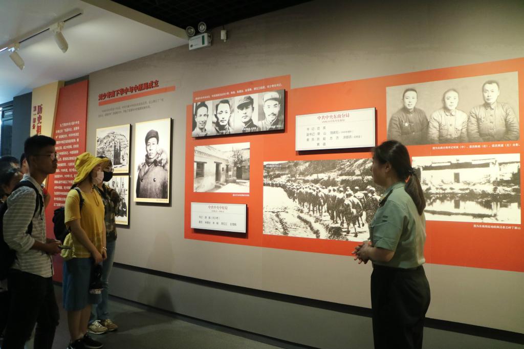 实践的第一站,队员们怀着崇敬的心情来到了盐城新四军重建军部旧址。这里曾是新四军重建军部和中共中央中局机关所在地。门楼正中央挂着“N4A从这里崛起”几个大字,队员们的记忆一下子回到了70多年前。在讲解员的带领下,我们逐一参观展厅,展厅内陈列着不少新四军各部队坚持敌后抗战的历史文物。有陈毅、刘少奇的照片和书信,有战士们穿过的衣服,有重要历史人物的题词,那一张张真实的照片、一封封激昂的书信、一件件沧桑的实物,真实地记录着新四军当年艰苦奋斗的历程和革命先烈们奋力抗争、不畏牺牲的英勇精神。参观完展厅,来到了新四军司令部作战室,“现在来到的是新四军司令部作战室,军参谋长赖传珠在此办公……”队员们认真听讲解员洪亮而生动的解说。这里张贴的地图、陈列的历史实物反映着党和人民的奋斗历程。通过这些真实的场景,大家更加感受到了新四军敌后抗战的艰辛,同时,对这段历史也有了更加深刻的了解!