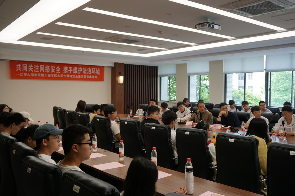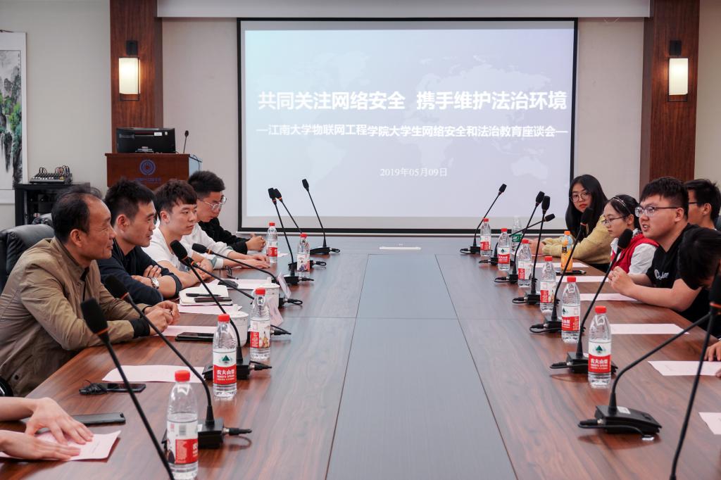 信息化建设与管理中心副主任蔡明作为特邀嘉宾,开展普及网络安全和网络法治教育等相关知识。2017级物联网工程专业的团员代表参加了本次活动。此次座谈会由物联网工程学院分团委书记吴垚主持。