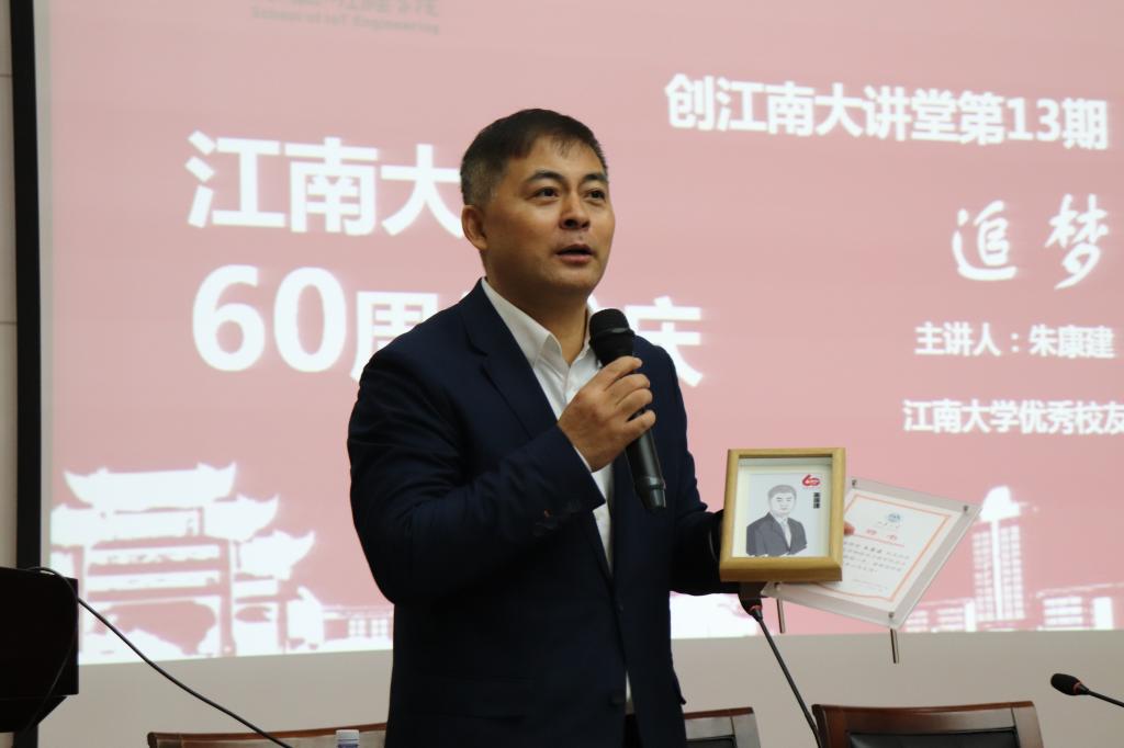 创业导师的聘书,并表示未来将为校友和在校学子提供更多交流机会,让优秀校友的江南精神影响更多学子。物联网工程学院学生会代表全体物联学子向朱康建先生赠送了一张画像作为纪念。