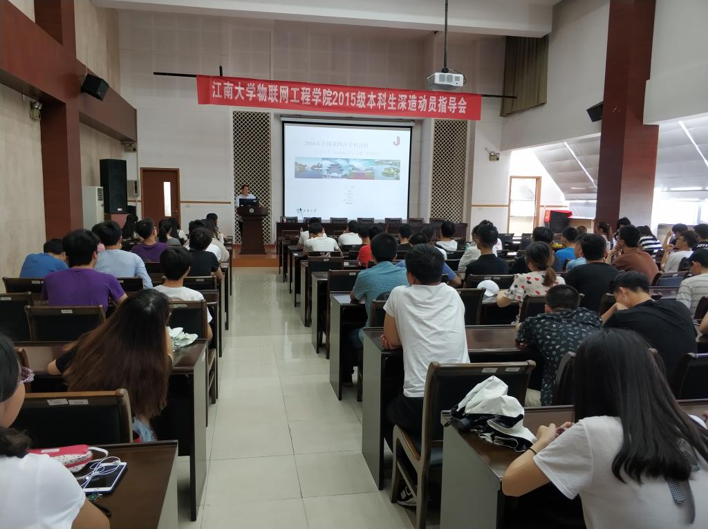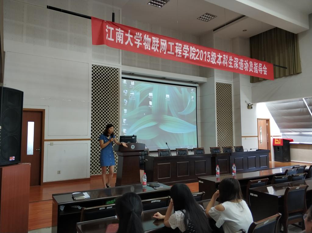 6月22日,物联网工程学院本科生深造动员指导会在学院D328召开,物联网工程学院副院长栾晓丽,控制科学与工程学科带头人、博士生导师丁峰教授,计算机科学与技术学科带头人、科研院院长、博士生导师吴小俊教授应邀参加本次活动,与2015级同学共话本科生继续深造的话题。