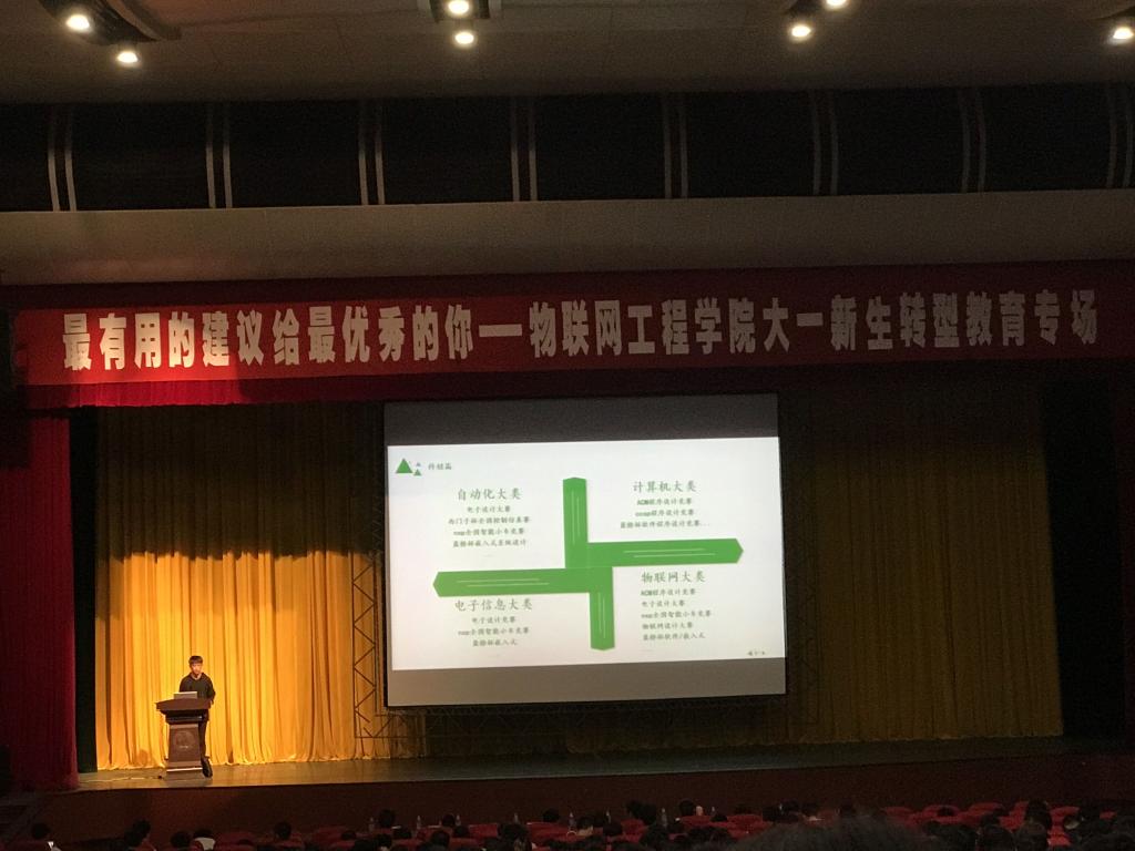 为帮助2017级新生更好的适应大学生活,合理规划人生目标。10月10日晚18::30,物联网工程学院2017级大一新生转型教育专场之“最有用的建议给最优秀的你经验分享会”在文浩馆成功举办,学院分团委书记吴垚老师,年级辅导员洪筱、杜磊、李灿老师等出席本次活动。物联网1502班林浩文、计算机1402班王茜、物联网1502班傅慧榕、自动化1502班乔运涛、自动化1401班于琳真作为主讲嘉宾,与学弟学妹们分享了各自在学习、科研、游学和工作上的丰富经验。