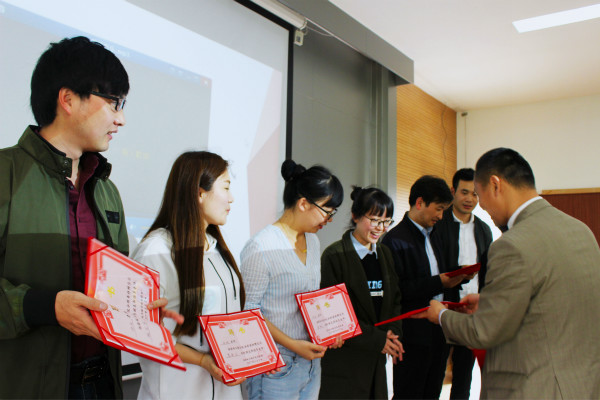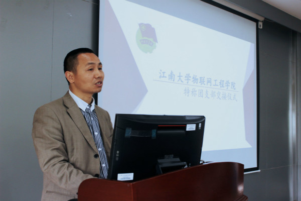 “蛟龙”入海,“远望”探空。主持人对物联网学院“蛟龙号”、“远望号”特称团支部及其所代表的精神内涵进行了一番简要的介绍之后,物联网学院党委副书记、副院长耿向阳为本次交接仪式致辞。耿书记对物联网学院各特称团支部自成立以来所取得的成就表示肯定,同时也表达了对新一届特称团支部的期许。耿书记亲切的话语为新一届特称团支部提供了源源不断的动力。随后,2014级“雷锋”特称团支部书记张闪铭从组织建设、思想建设、学风建设、团日活动、特色工作五个方面对这学期以来团支部的组织建设进行了精彩的汇报,并在汇报的最后提出了关于“如何办好团日活动”的建议,得到了老师和同学们的一致好评。