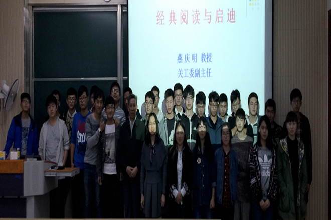 近日,物联网工程学院自动化1501王选特称团支部和电气1502 瞿秋白特称团支部“阅读经典,点亮人生”主题教育活动在一教1A213举行。活动邀请到了物联网学院关工委的燕庆明教授作为活动嘉宾,自动化1501班和电气1502班全体同学参与了本次活动。