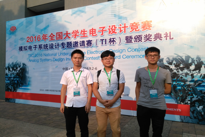 9月7日讯,物联学子参加全国大学生电子设计竞赛2016TI杯模拟电子系统设计邀请赛喜获一等奖1项,三等奖1项,其中由物联网工程学院自动化专业吴奕男、张鹏松、林浩文3位同学完成的赛题“频率特性测试仪”顺利通过评测,荣获本届竞赛该赛题的一等奖,由学院电子信息专业李刘青、刘华伟、朱凌超3位同学完成的赛题“电流无线传感器装置”,荣获该赛题的三等奖。这也是黄漫