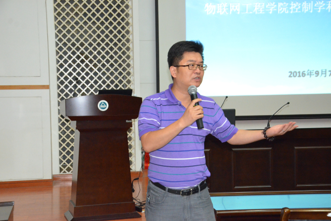 计算机相关学科的情况,在介绍的过程中,吴院长特别指出,学院计算机科学方向在人工智能方面的特出成就,并重点介绍了IEEE智慧城市国际会议在无锡的召开情况,可以为同学们的未来求学所带来的机遇,使同学们对未来的研究生学习充满期待。潘峰教授以学校控制工程方向教学评估的各项数据为依据,向同学们详细介绍了学院控制工程方向的学科优势,潘教授还特别介绍了学院研究生导师最年来的研究成果、优秀研究生的成果,学院学科研究团队的教学和研究模式、以及学院目前的研究设备和学术活动等方面的内容,使同学们对学院控制科学方向的研究生学习十分向往。听完两位教授的介绍,同学们也从如何做好考研选择、如何进行跨专业考研等方面向老师提出问题,并获得的满意的答案。