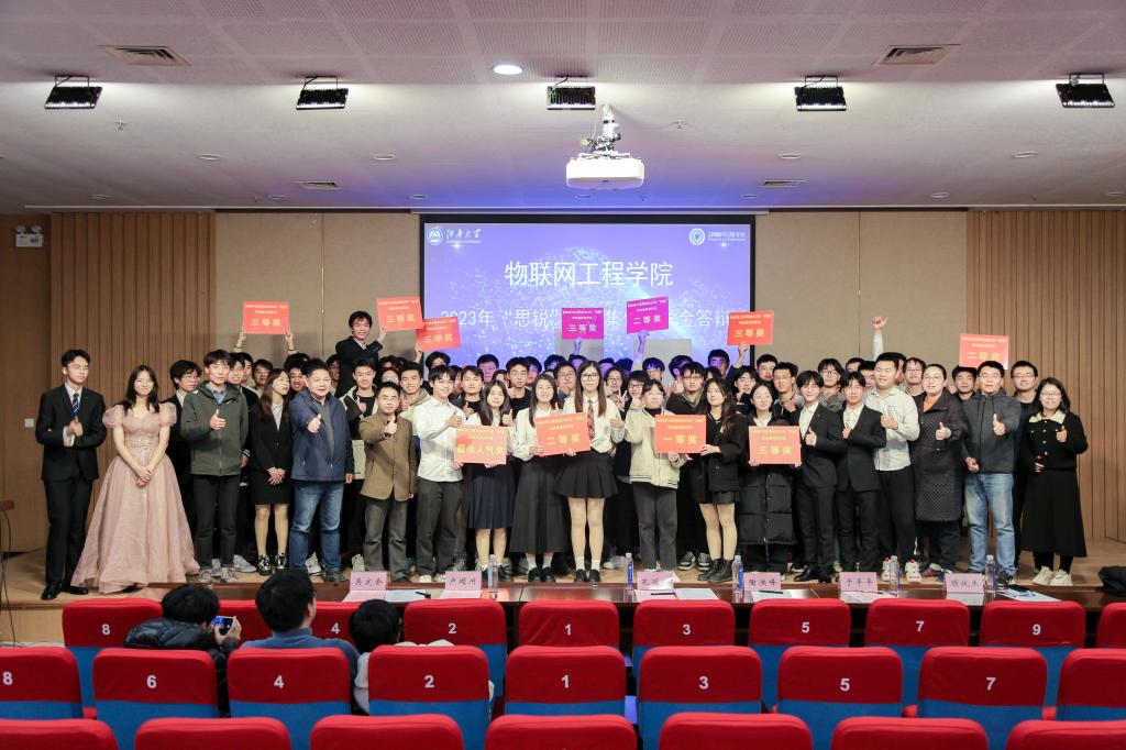优秀集体,六五献礼。11月17日晚,物联网工程学院2023年“思锐”学生集体奖学金评选活动在图书馆305报告厅举行,以物联学子的累累硕果献礼学校65周年校庆。物联网工程学院党委副书记、副院长孔丽丹,副院长陶洪峰,自动化系主任吴定会,电子工程系主任于平平,信息技术系副主任顾斌杰,电气工程系副主任卢闻州出席并担任评委,各年级辅导员及300余名学生现场观看。