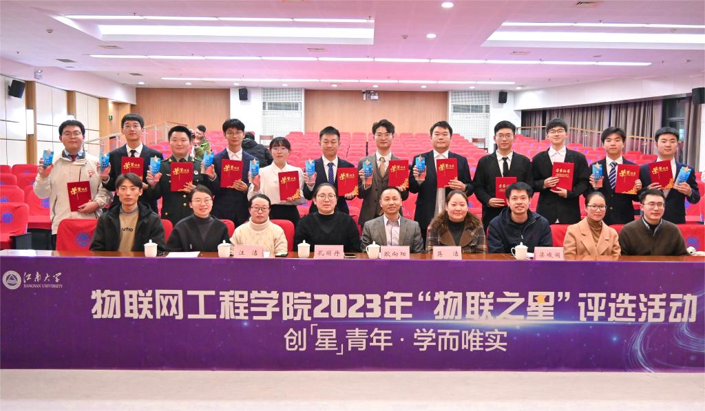 12月7日晚,物联网工程学院2023年“物联之星”评选活动在图书馆305报告厅举行。校学生工作部副部长蒋洁,校研究生工作部正科级干部汪洁,学院党委书记耿向阳、党委副书记兼副院长孔丽丹、副院长梁峻阁出席活动并担任评委,学院全体辅导员及300余名物联学子共同观看。