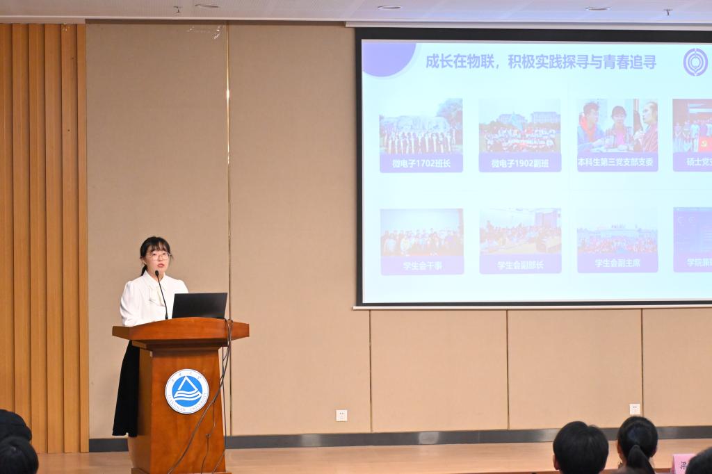 本次评选活动经学生自主申报、材料审核筛选、初赛展示遴选等环节,从本、硕、博群体中共计产生15位“物联之星”候选人进入决赛展示。他们中有学习标兵、学术先锋,有科创达人、竞赛精英,有实践强旅、党团模范,有自强之星、爱心大使,涵盖“学习”“实践”“励志”“文体”四大类别。决赛现场,各候选人以精心准备的PPT展示呈现自身硬核实力,用感触颇深的实践经历传递优秀成长经验。时世骏“勤能补拙,厚积薄发”,以本科生第一作者发表中科院一区SCI论文(影响因子8.6),用自己的梦想诠释一切皆有可能;朱文青“因为热爱,所以坚持”,连续两年打破全国大学生智能汽车竞赛学校最好成绩;霍雷霆“愿以温柔待花开”,用一年的支教之旅为山里孩子埋下梦想的种子,也为自己根植“小我”融入“大我”的情怀担当;齐子时不仅全面发展,还用一篇全文2.7万字、全网阅读量8万+的《黄漫