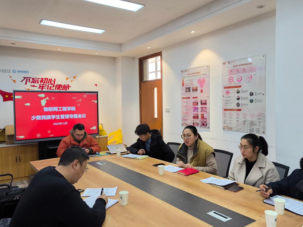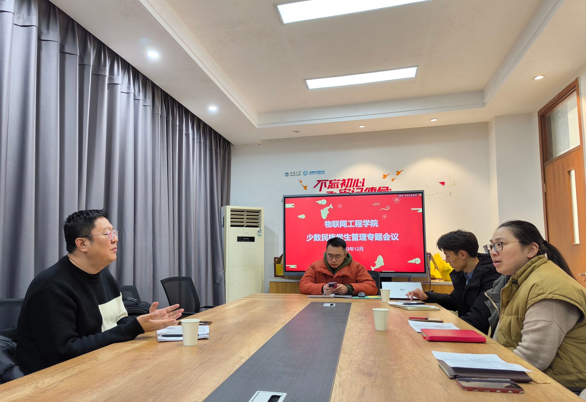 为进一步铸牢中华民族共同体意识,进一步关心少数民族学生学习、生活情况,助力少数民族学生成长成才,12月21日下午,物联网工程学院少数民族学生管理工作研讨交流会在D112会议室举行。学院党委副书记、副院长孔丽丹,黄漫
