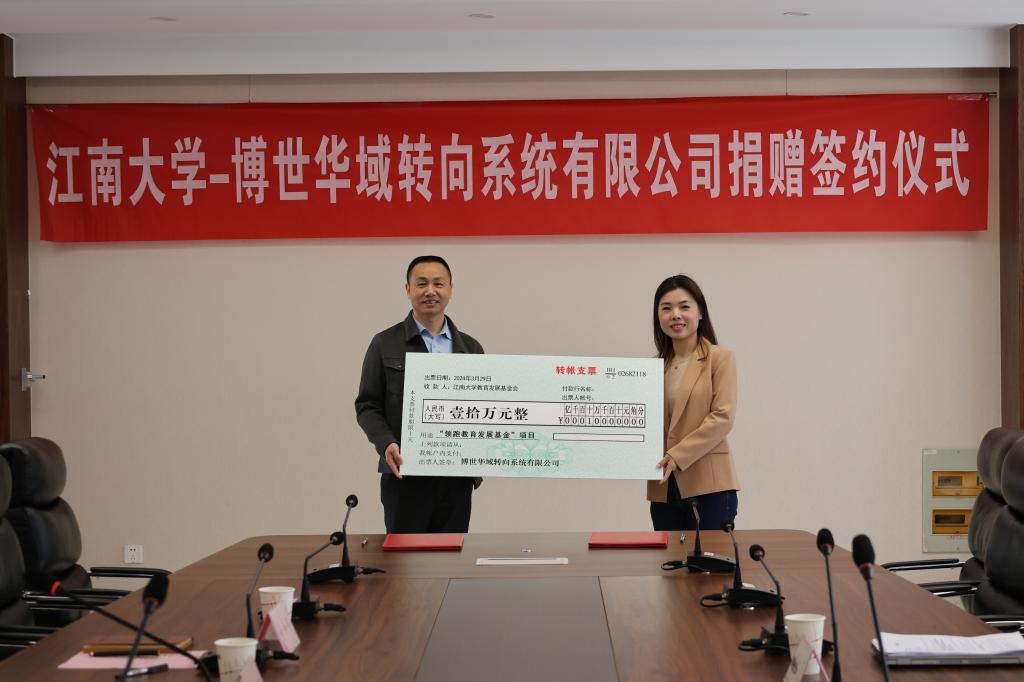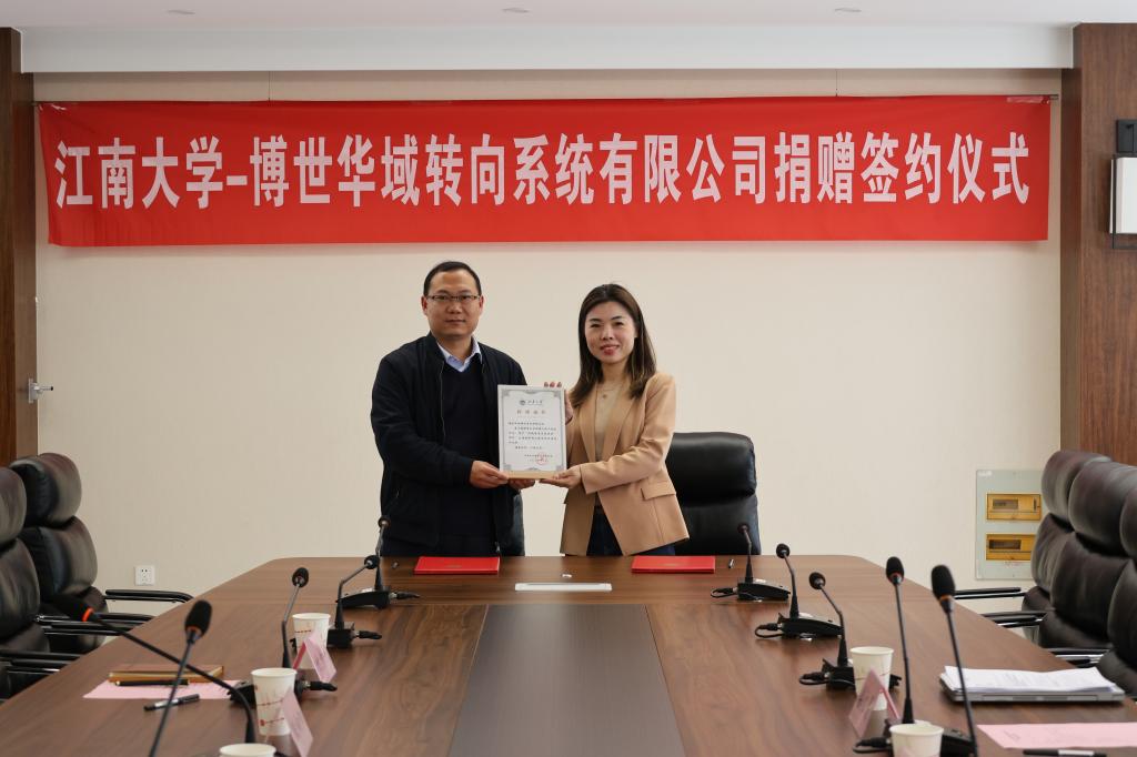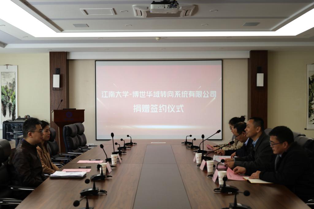 -博世华域转向系统有限公司捐赠签约仪式在物联网工程学院B222会议室举行。博世华域转向系统有限公司人力资源与行政部经理潘佳明、招聘负责人兼研发HRBP柴忆晨,社会合作与校友联络处副处长任增亮,物联网工程学院党委书记耿向阳、院办主任付少平出席本次活动。签约仪式由学院辅导员李灿主持。