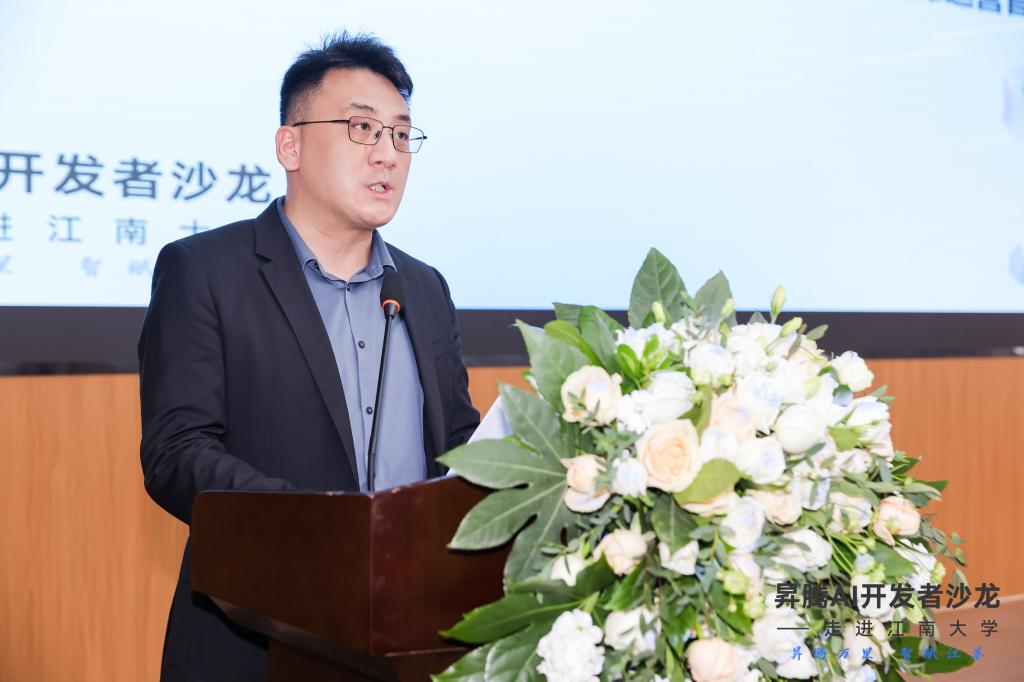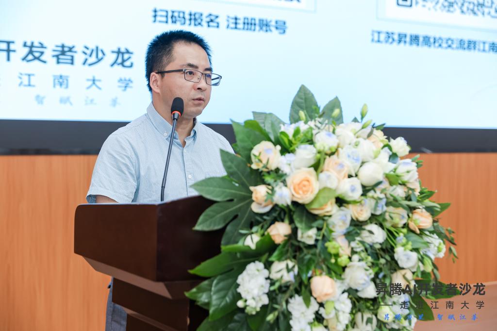 物联网工程学院教学副院长陶洪峰代表学校致欢迎词。陶院长指出华为昇腾作为人工智能领域的一颗璀璨明星,正以其强大的技术实力和创新能力,引领着行业的发展潮流。此次开发者沙龙的举办,为黄漫