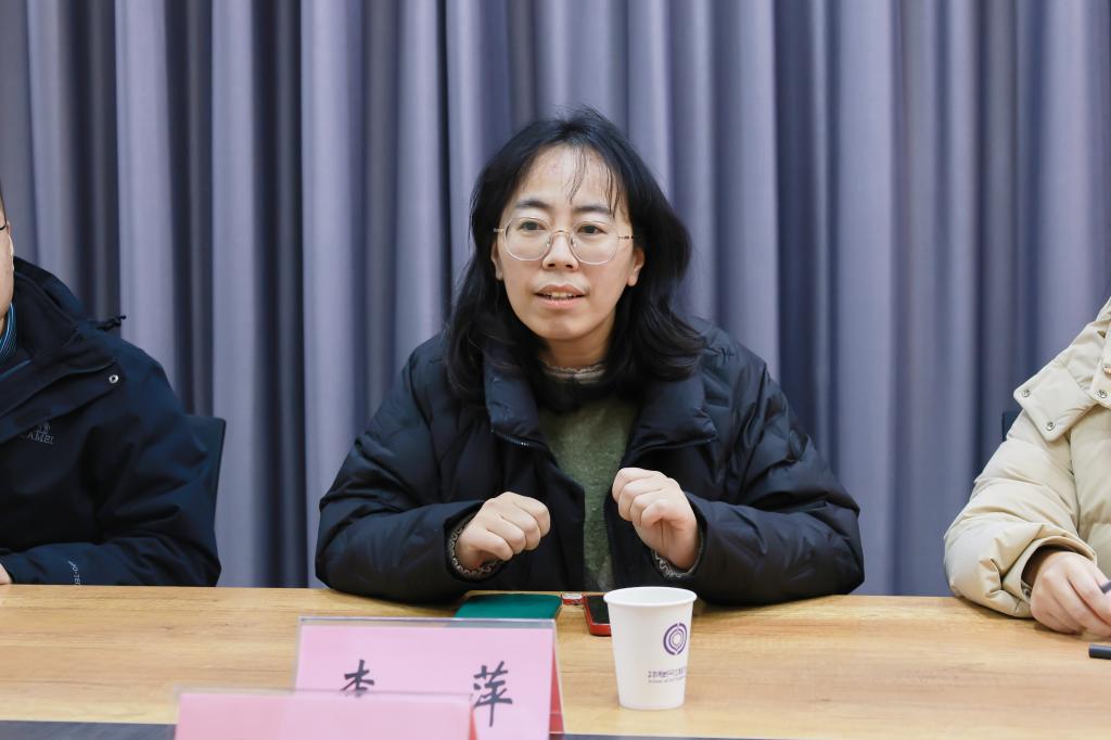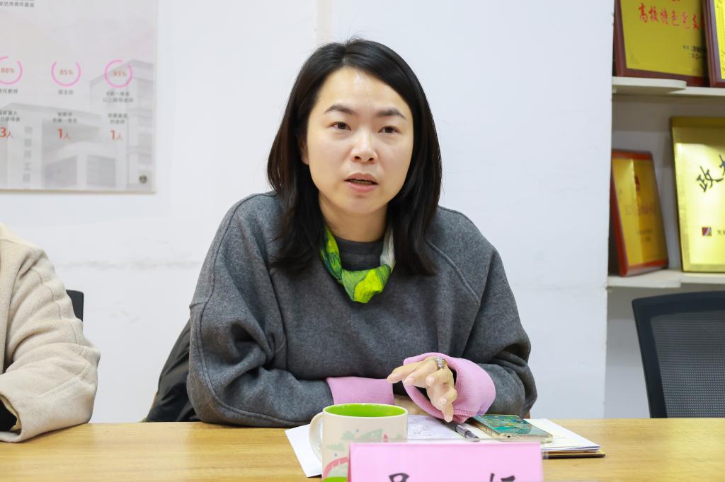 李萍对物联网工程学院学工团队的热情接待表示感谢。她介绍了数字科技与创意设计学院的学工概况,分享了学院的特色做法和成果,并分析了目前面临的问题与难点。她指出,目前学生工作呈显出诸多新的特征,如何精准把握时代特点并主动求变是全体辅导员面对的一个重要课题。希望通过此次交流,能够共同梳理问题、剖析根源,在思维碰撞中找寻创新灵感,借鉴彼此的成功经验和有效策略,突破当下工作中的瓶颈。