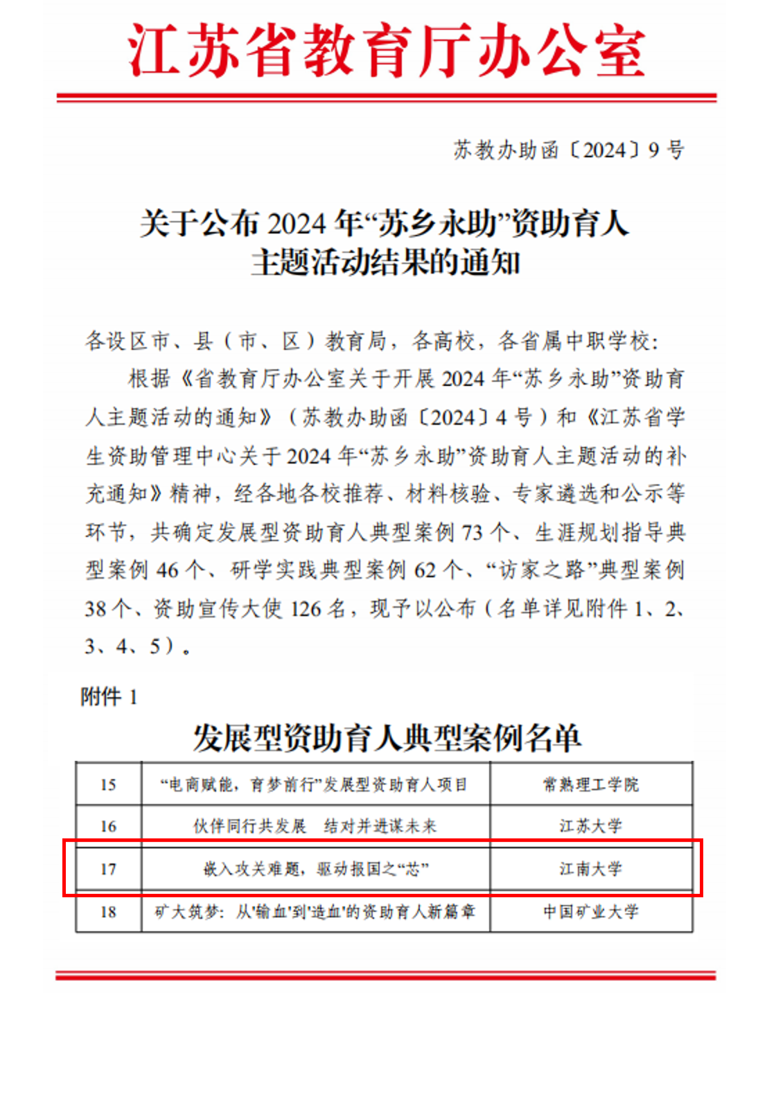 选送的唯一获选案例。