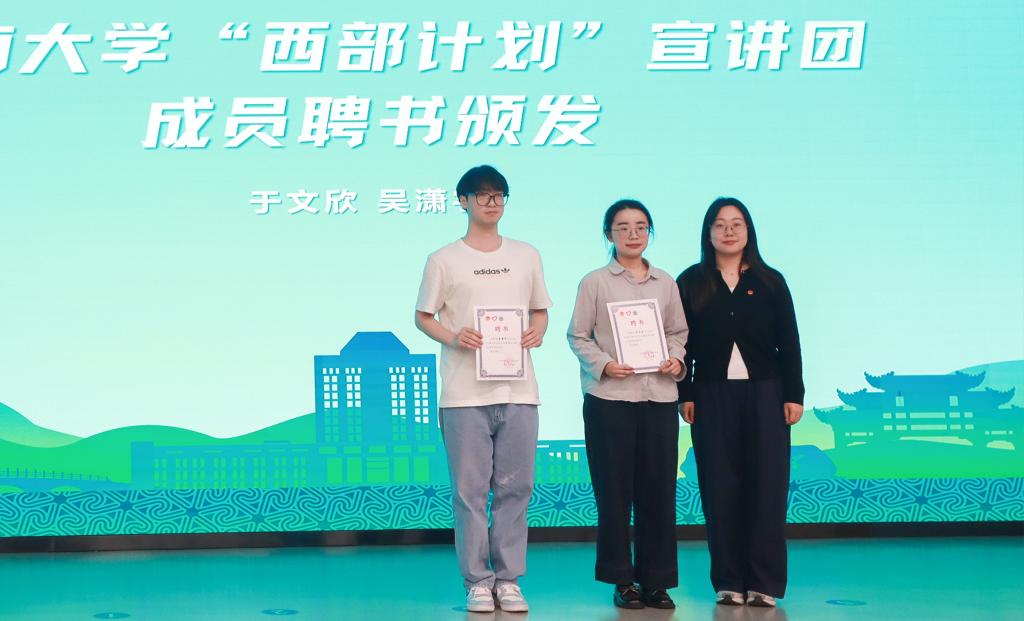 “西部计划”宣讲团成员颁发聘书。
