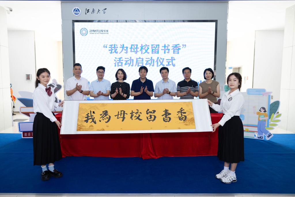 活动最后,领导嘉宾共同执笔,为书法作品——“我为母校留书香”的每个字书写下浓墨重彩的最后一笔。七笔落成,书香永驻,物联网工程学院2025年“我为母校留书香”毕业生捐赠图书活动正式开幕。