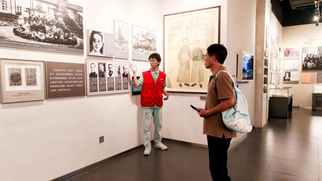 志愿讲解与新苗培育:构建跨代际传承闭环。在常州三杰馆指导老师的专业培训下,实践团成员聚焦语音语调、肢体表达、史料延展等维度下苦功,按“熟文本、炼表达、析内涵、审细节”的流程通过考核,拿到了属于自己的讲解员“上岗证”。他们认真对待每一场讲解,用心回应每一名观众,这支身着红马甲的00后志愿讲解员队伍,已然成为常州三杰馆里一道明媚动人的风景线。同时,实践团成员深度参与常州三杰纪念馆“红领巾讲解员”的培训工作中,逐字逐句帮少先队员打磨讲稿,用情景剧形式还原历史场景,通过“大手牵小手”的方式,将红色基因的种子悄然种下。培训中,一名扎马尾的少先队员指着讲解词问道:“我们如今的幸福生活,是不是先烈爷爷们奋力守护的愿景?”这一追问,让团队成员深切体悟:传承并非单项的理念灌输,而是当少年对历史主动探索时,将“勇毅担当”“家国情怀”内化为价值认同的自觉行动。这份传承的厚重,既映照在少年澄澈的眼眸中,更镌刻在一代代人接过精神接力棒的担当里。