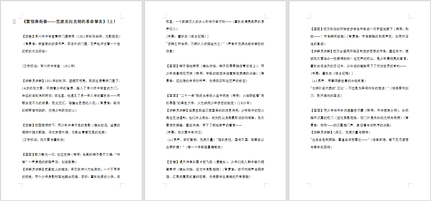 史料解码与技术活化:让历史文本“开口说话”。为让红色精神在新时代绽放新辉,团队以“新媒体赋能红色传承”为路径,先深入研读史料、挖掘史实出处,再着手打磨系列短视频脚本:《雷惊燕衔春——觅渡走向光明的革命挚友》以时空交错的镜头语言,生动再现“常州三杰”于战火纷飞中并肩前行的深厚情谊;《赤心传薪火:书写信仰的红色传灯之路》则巧妙串联烈士们的抗战檄文、绝笔家书,与当代青年的使命宣言形成跨越时空的精神对话。当沉睡的史料化作镜头里的鲜活故事,当历史回响融入青年的日常感知,红色精神便实现了从“史料记忆”到“心灵认同”的跨越,在新时代青年心中深深扎根。