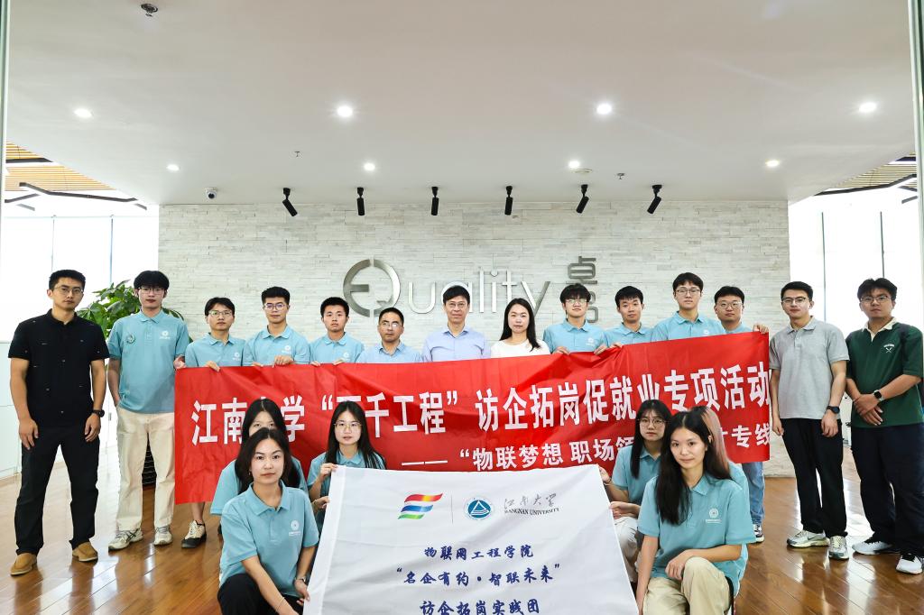 为深入贯彻落实教育部“访企拓岗促就业”专项行动工作部署,进一步拓展就业岗位资源、深化校企合作机制,近日,物联网工程学院“名企有约・智联未来”实践团赴无锡新区开展“访企拓岗促就业”专项调研实践活动。实践团深入朗新科技集团股份有限公司、无锡小天鹅电器有限公司、卓品智能科技无锡股份有限公司、无锡先导智能装备股份有限公司、无锡奥特维科技股份有限公司及无锡威孚高科技集团股份有限公司等多家行业标杆企业,通过参观研学、座谈交流、校友分享等形式,开启了一场贯通理论实践、链接课堂与产业的深度认知之旅。物联网工程学院党委副书记、副院长吴妍,副院长陶洪峰,黄漫