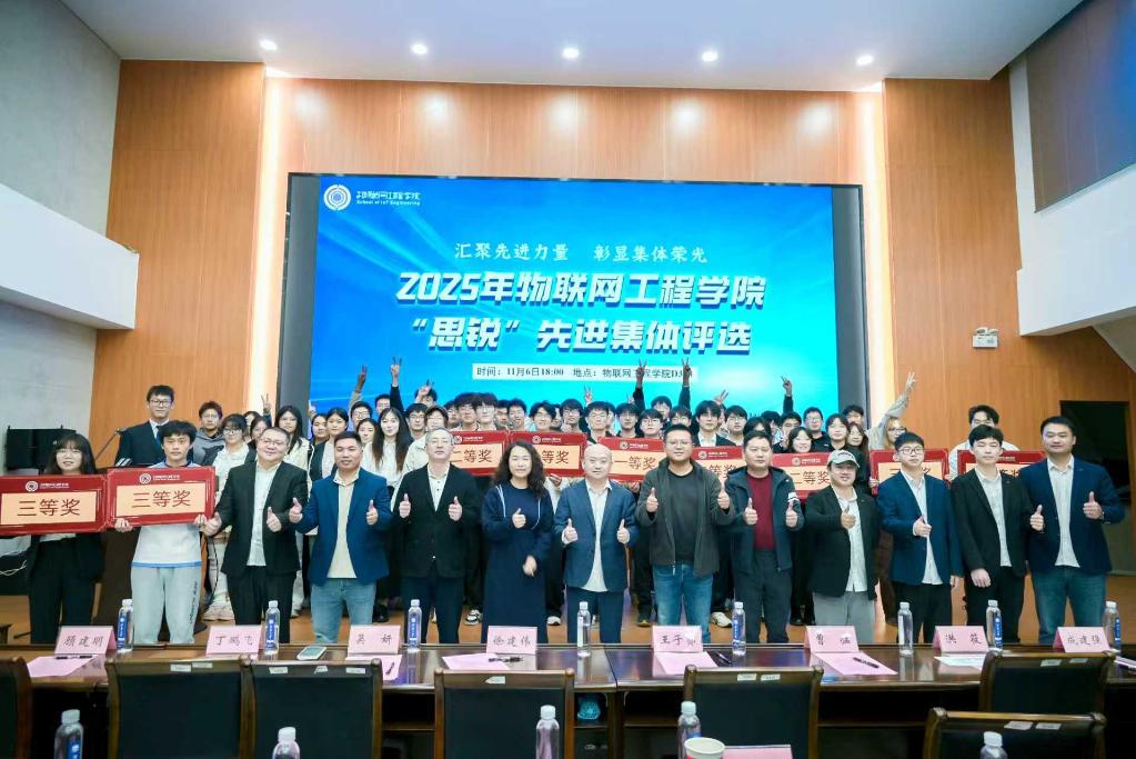 从“思锐”集体奖到“物联之星”,从优秀团体到青年榜样,多年来,物联网工程学院始终以榜样为引领,深耕育人沃土。此次“思锐”先进集体评选活动,不仅是对学院团体建设成效的一次全面检阅,更是校企协同育人的生动实践。未来,学院将继续传承“唯实”院训,深化与社会力量的合作,为学子搭建更多成长平台,激励广大物联青年以先进为标杆,以协作聚力量,以拼搏赴未来,在青春赛道上书写无愧于时代的精彩篇章,为行业发展与社会进步注入源源不断的青春动能。