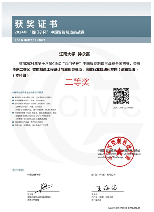 西门子杯智能制造大赛赛区二等奖