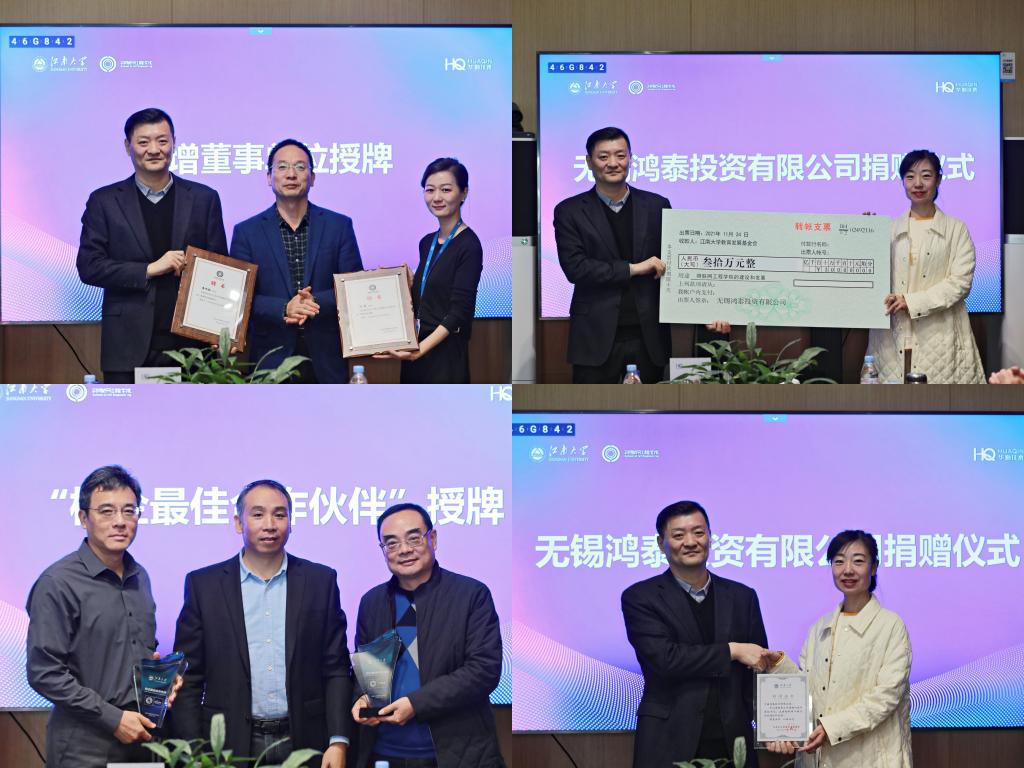 教育发展基金会捐赠30万元支持物联网工程学院学科建设,窦新华接受捐赠支票并为企业颁发捐赠证书。按照《黄漫