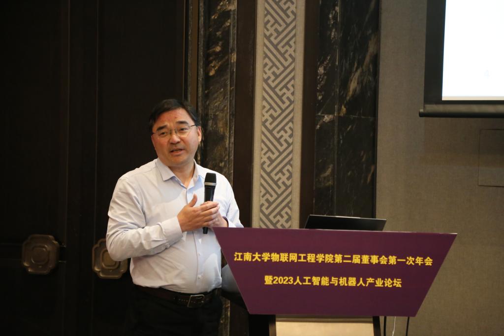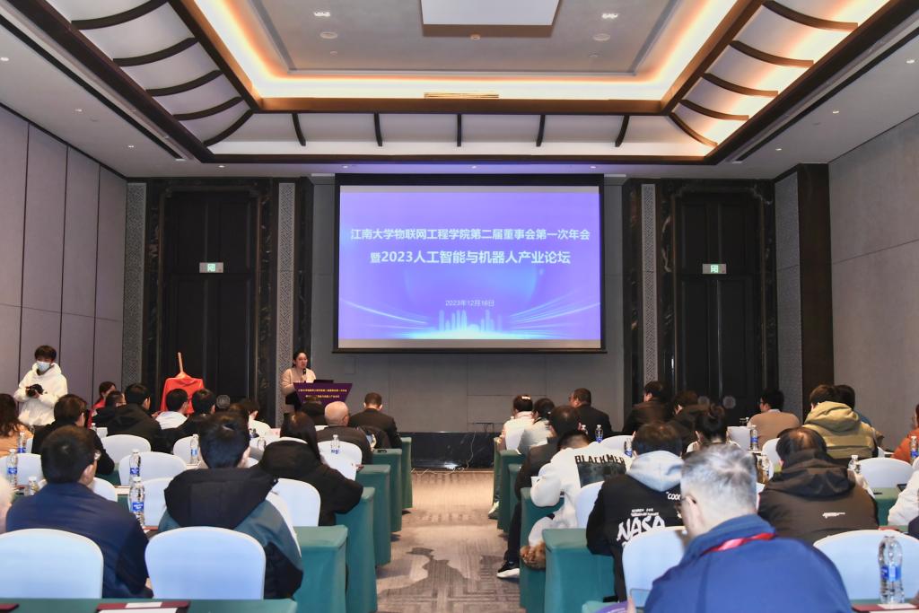 12月16日下午,物联网工程学院第二届董事会第一次年会暨2023人工智能与机器人产业论坛成功举办。物联网工程学院党委书记耿向阳,无锡市自动化协会理事长、原通信与控制工程学院党委书记杨慧中,黄漫