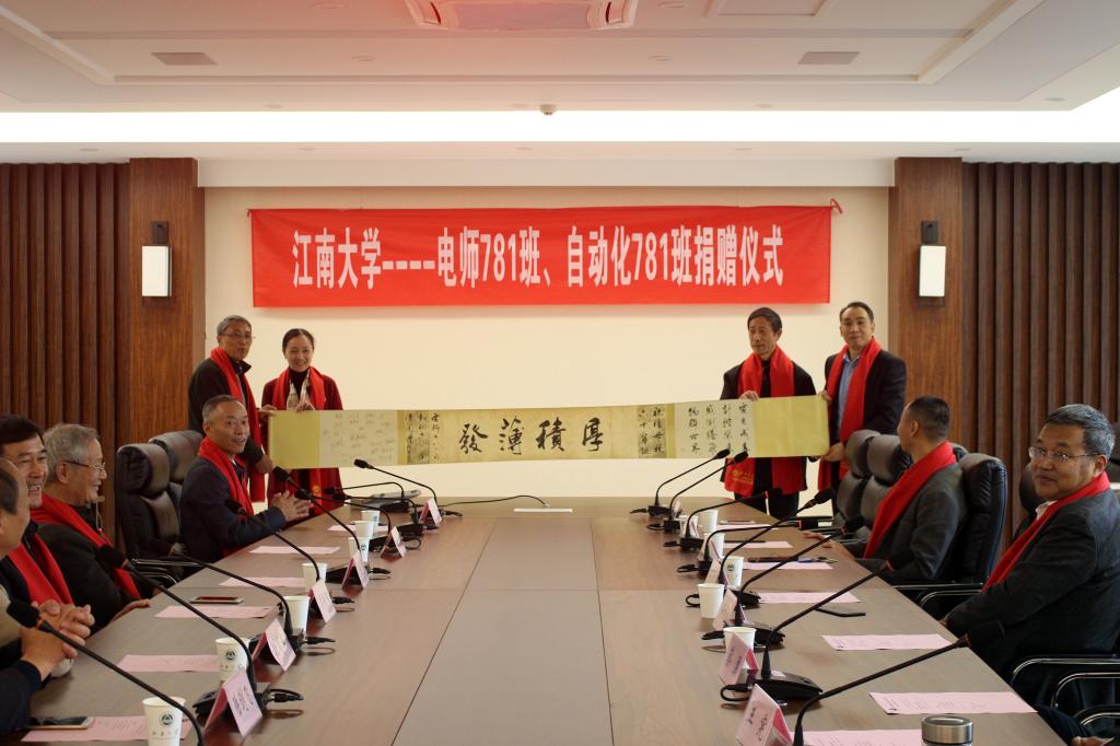 电师781班、自动化781班捐赠仪式在物联网工程学院B222会议室顺利举行。电师781班、自动化781班出席的校友代表有赵曾贻、周艳阳、朱又迈等十校友,黄漫
